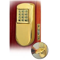 No more fumbling for your keys... Keyless Entry System makes getting in easy! For you, that is. Cat burglars are still gonna have some trouble. That's because this System provides the security of a deadbolt, but with the added convenience of a user-programmable combo keypad. You decide the combo of 2-8 digits. Auto shut-down thwarts would-be burglars after 3 unsuccessful attempts at the combo. Comes with 2 keys for manual override. Replaces existing deadbolt on most doors. Includes flip-up keyhole cover. Attractive brass finish. Requires 4 AA batteries (not included). Amazingly convenient! Order yours ONLINE today! Home Keyless Entry System